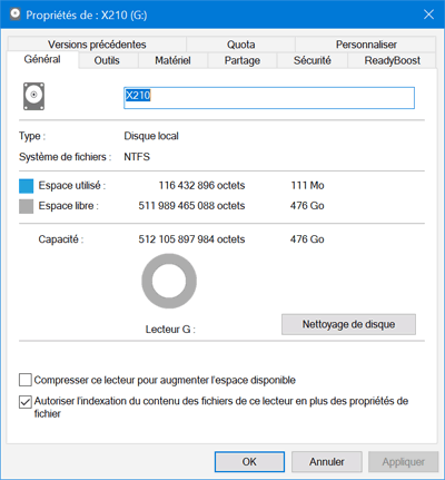Par conséquent : les valeurs affichées dans Windows devraient être 512 Go ou 476 Gio mais pas 476 Go*.